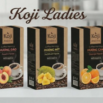 Koji Ladies là dòng cà phê đặc biệt được phát triển dành riêng cho phái nữ, kết hợp giữa thưởng thức và chăm sóc sức khỏe từ bên trong. Sản phẩm sử dụng 100% cà phê Arabica đặc sản tuyển chọn từ vùng Tây Bắc Việt Nam, nơi có điều kiện tự nhiên lý tưởng để tạo ra hạt cà phê chất lượng cao. Cà phê được lên men sinh học bằng nấm Koji (Aspergillus oryzae) – chủng vi sinh truyền thống Nhật Bản đã được FDA và WHO công nhận an toàn trong thực phẩm. Quá trình lên men sâu giúp phân giải các hợp chất trong hạt cà phê, tạo nên hương vị dịu nhẹ, ngọt thanh và hậu vị cân bằng, giảm chua. Đồng thời, sản phẩm chứa hàm lượng hoạt chất chống oxy hóa cao, hỗ trợ nuôi dưỡng làn da, cải thiện thần sắc và mang lại cảm giác thư thái. Koji Ladies không gây mất ngủ, phù hợp với nhịp sống hiện đại của phụ nữ yêu thích sự tỉnh táo nhưng vẫn nhẹ nhàng với cơ thể. Bao bì sinh học thân thiện môi trường, tích hợp van một chiều giúp bảo quản hương vị trọn vẹn. Đây là sự kết hợp hài hòa giữa cà phê đặc sản Việt Nam, công nghệ Nhật Bản và giá trị chăm sóc sức khỏe dành cho phái đẹp.