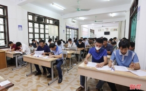 Các ứng viên tham gia phiên tuyển dụng vào làm việc tại Nhà máy Sản xuất ô tô điện VinFast Hà Tĩnh phải trải qua 3 phần thi: kiểm tra lý thuyết, kiểm tra thể lực và phỏng vấn trực tiếp.