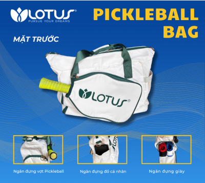 LOTUS Pickleball Bag Trắng – thiết kế đầy phong cách và tiện dụng cho người chơi Pickleball. Với ngăn đựng vợt riêng, ngăn giày chuyên biệt và nhiều khoảng để đồ cá nhân, chiếc túi này giúp bạn mang theo mọi thứ mình cần một cách gọn gàng. Màu trắng sang trọng + dây đeo chéo tháo rời, cho bạn linh hoạt khi mang. Giá 600.000₫ — sự lựa chọn thời trang & hiệu quả cho mỗi trận đấu hoặc buổi tập.