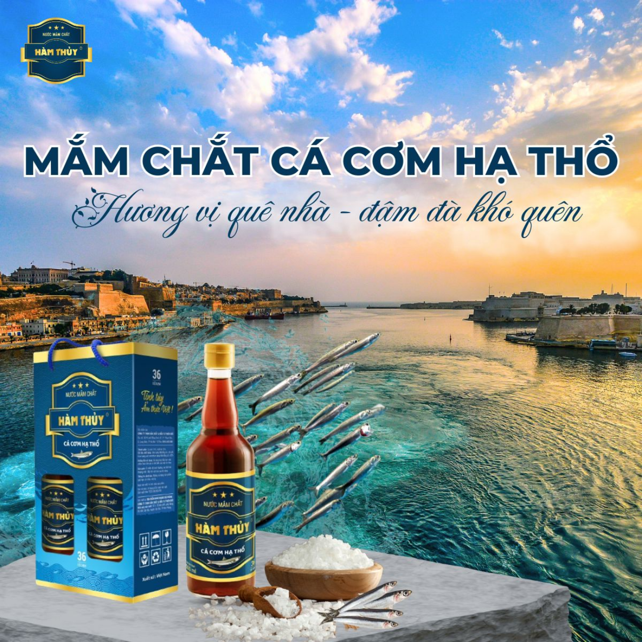 Nước mắm Hàm Thủy là kết tinh của nghề làm mắm truyền thống Việt Nam hàng trăm năm, gắn liền với biển cả và văn hóa ẩm thực dân tộc. Sản phẩm được tạo nên từ nguồn cá tươi chọn lọc, muối sạch đạt chuẩn cùng bí quyết ủ chượp gia truyền. Nhờ đó, nước mắm Hàm Thủy có hương vị đậm đà tự nhiên, hậu ngọt sâu, phù hợp khẩu vị nhiều vùng miền. Mắm được sản xuất theo phương pháp truyền thống, không chất bảo quản, không phụ gia công nghiệp, an toàn cho sức khỏe. Là sản phẩm chủ lực của Công ty TNHH Sản xuất & Đầu tư Thiên Đức, Hàm Thủy luôn tuân thủ tiêu chí Ngon – Sạch – An Toàn. Thương hiệu hướng đến gìn giữ tinh hoa truyền thống và lan tỏa giá trị ẩm thực Việt đến mọi gia đình và bạn bè quốc tế.
