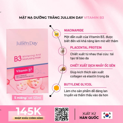 Mặt nạ dưỡng trắng Vitamin B3 Jullien Day - bí kíp cho làn da trắng mịn, cải thiện nếp nhăn