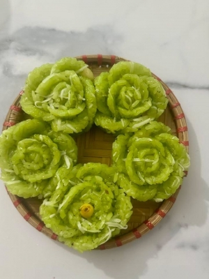 Tất cả được trình bày trên mẹt tre mộc mạc, trang trí bằng lá chuối xanh tươi và hoa xôi tạo hình nghệ thuật – thích hợp cho các dịp lễ Tết, cúng Rằm, đầy tháng, cưới hỏi, khai trương, hoặc tiệc chay.