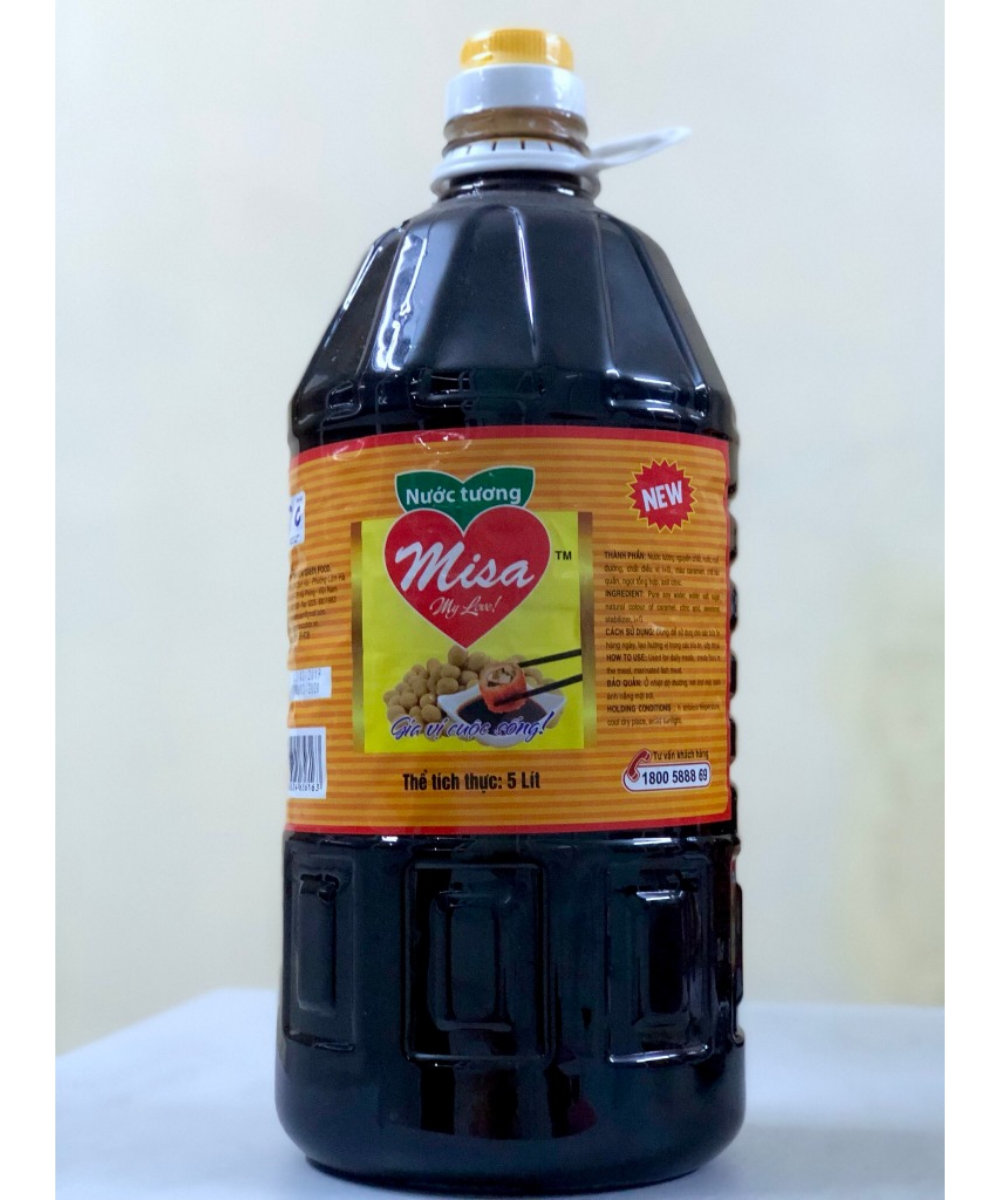 Nước Tương Misa New Can 5L là dòng sản phẩm cao cấp được Misa nghiên cứu và hoàn thiện công thức nhằm đáp ứng nhu cầu sử dụng lớn trong nhà hàng, quán ăn và bếp công nghiệp. Sản phẩm được làm từ đậu nành tự nhiên, lên men theo công nghệ hiện đại, cho màu nâu cánh gián trong đẹp, hương thơm dịu và vị mặn ngọt hài hòa. Phiên bản New được nâng cấp độ đạm và độ tinh khiết, giúp món ăn đậm vị hơn nhưng vẫn thanh, không gắt cổ.