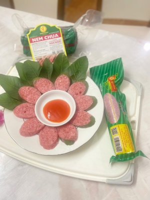 Nem chua tỏi Nghị Được là món ngon truyền thống được chế biến thủ công mỗi ngày, đảm bảo tươi – sạch – chuẩn vị – an toàn. Từng miếng nem hồng hào tự nhiên, giòn sần sật, quyện cùng vị tỏi thơm nồng, lá ổi và ớt .