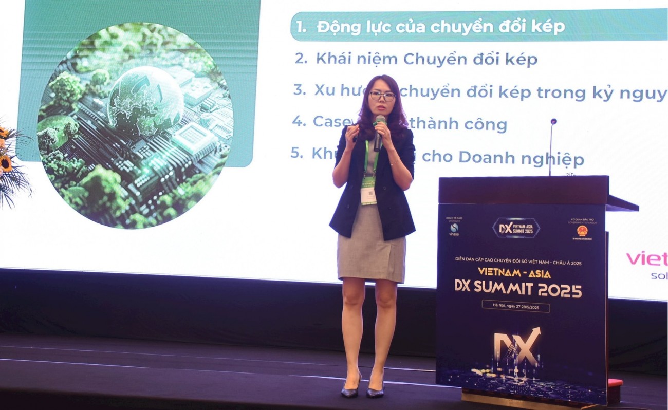 “Chuyển đổi kép, hay còn gọi là "Digital and Green Transformation", là quá trình thực hiện song song CĐS và chuyển đổi xanh để đạt được mục tiêu phát triển bền vững. Đây là sự kết hợp hai xu hướng quan trọng nhằm thúc đẩy các mục tiêu phát triển bền vững cho DN, quốc gia và toàn cầu”, bà Trịnh Thị Lan chia sẻ.