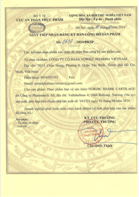 Nordic Shark Cartilage (Dưỡng chất sụn cá mập Bắc Âu) là dưỡng chất bảo vệ sức khỏe được phát triển và sản xuất tại Na Uy, theo tiêu chuẩn Na Uy, và được chứng nhận từ Châu Âu và Hoa Kỳ