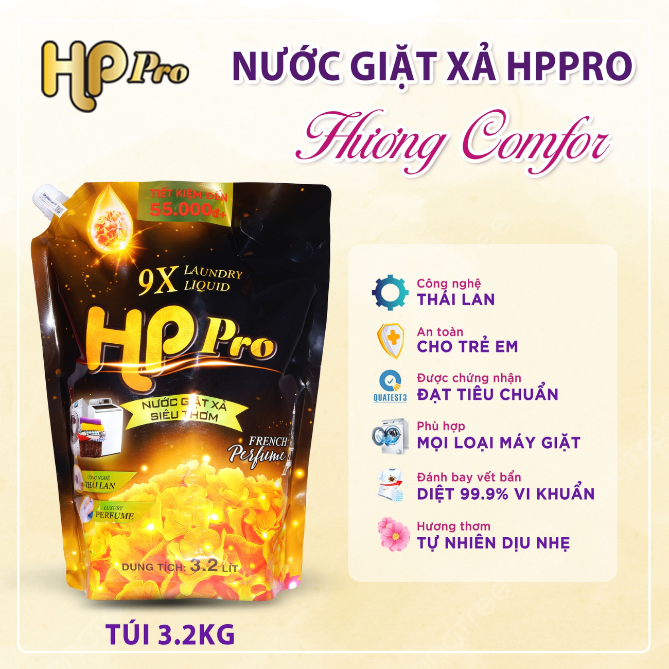 Nước Giặt Xả Đậm Đặc HP Pro Hương Comfort Túi 3,2L – Giặt Sạch Mềm Vải, Thơm Lâu 48H