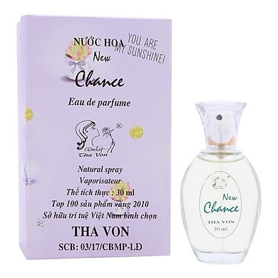 Nước hoa New Chance 30 ml được sản xuất từ Công ty cổ phần THA VON, nhà máy sản xuất mỹ phẩm đạt tiêu chuẩn CGMP – ASEAN .