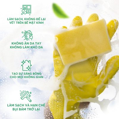 Làm sạch sâu: Công thức đặc biệt giúp kính sáng bóng, loại bỏ vết ố nhanh chóng.