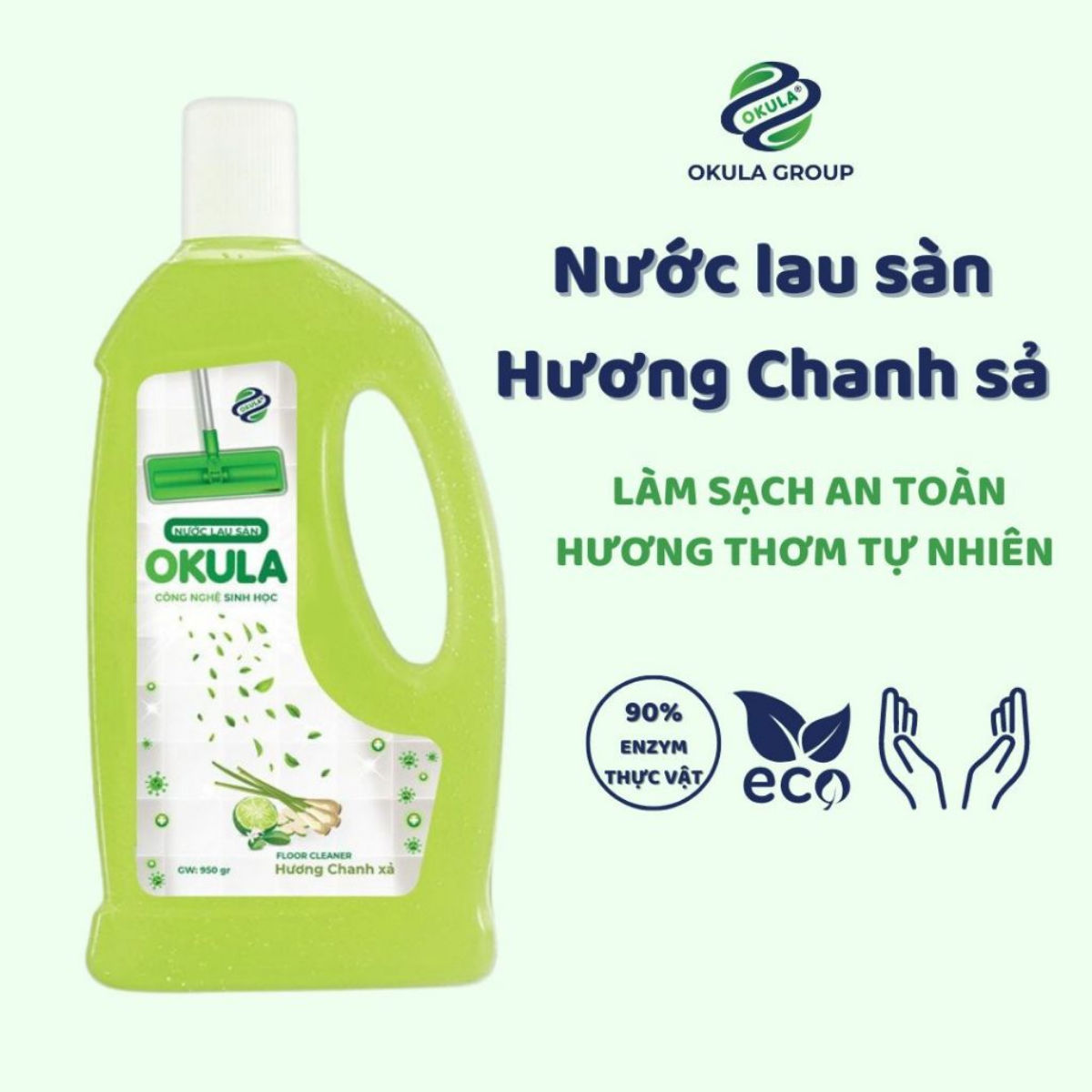 Nước Lau Sàn OKULA Hương Chanh Sả 950gram – Sạch Sâu Diệt Khuẩn, Thơm Mát Dễ Chịu