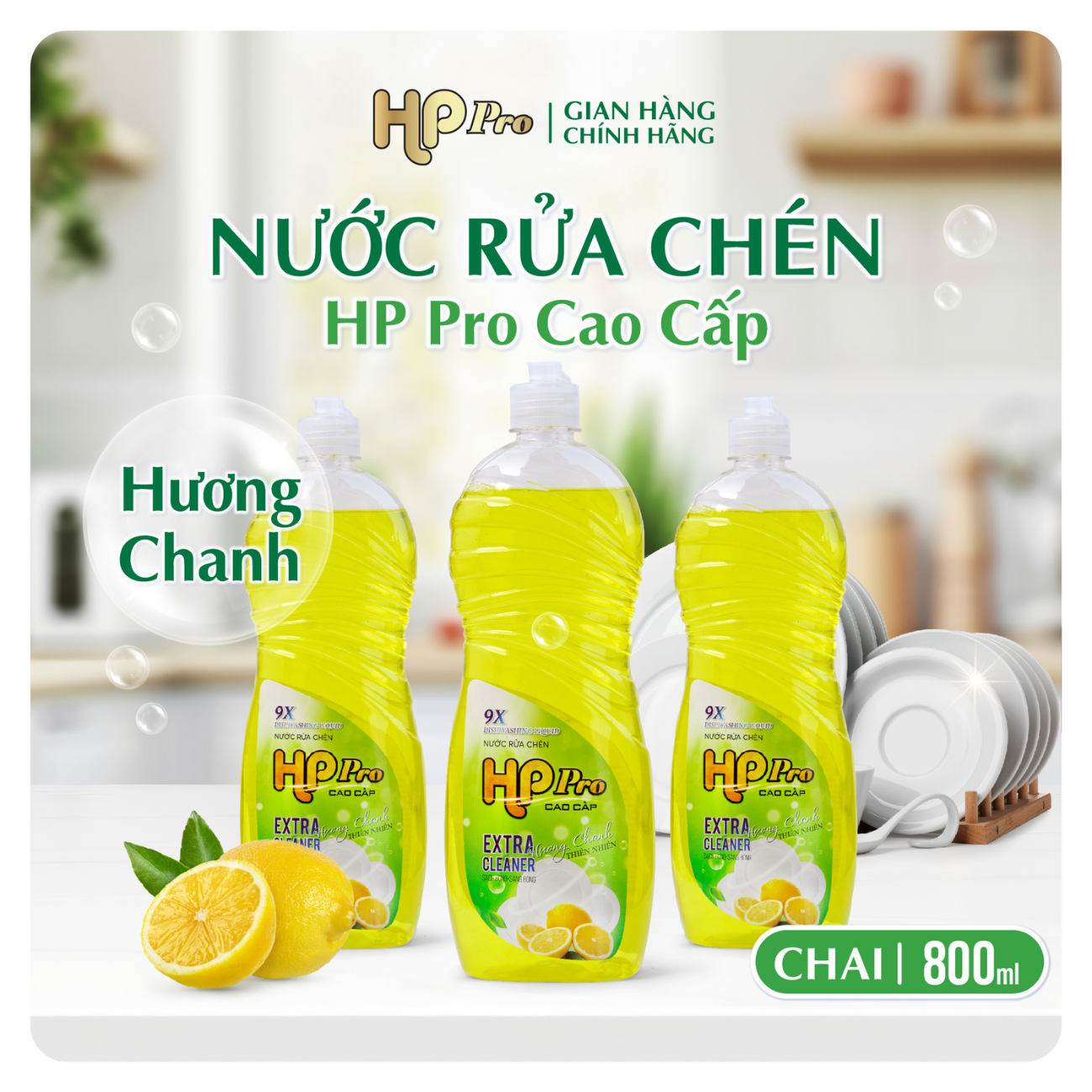 Nước Rửa Chén Cao Cấp HP Pro Hương Chanh Chai 800ml – Sạch Dầu Mỡ, An Toàn Cho Da Tay