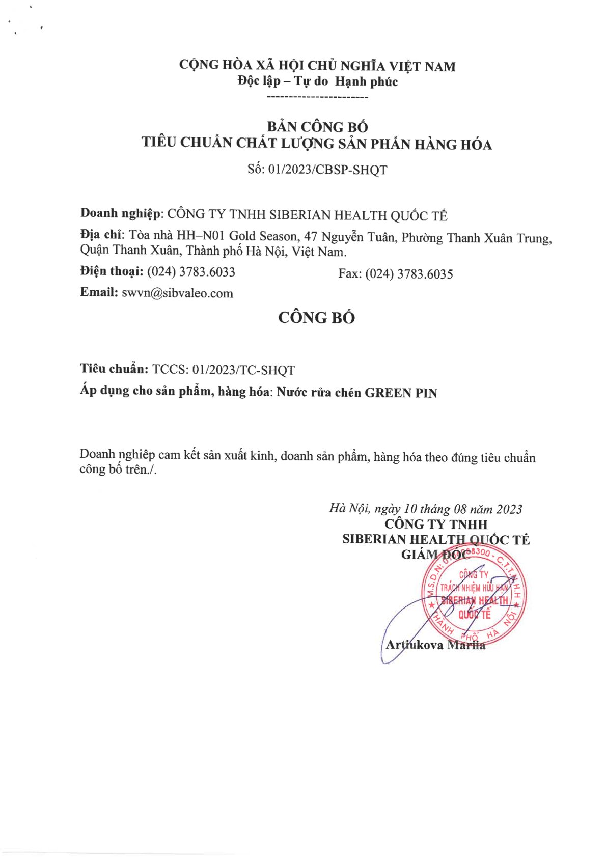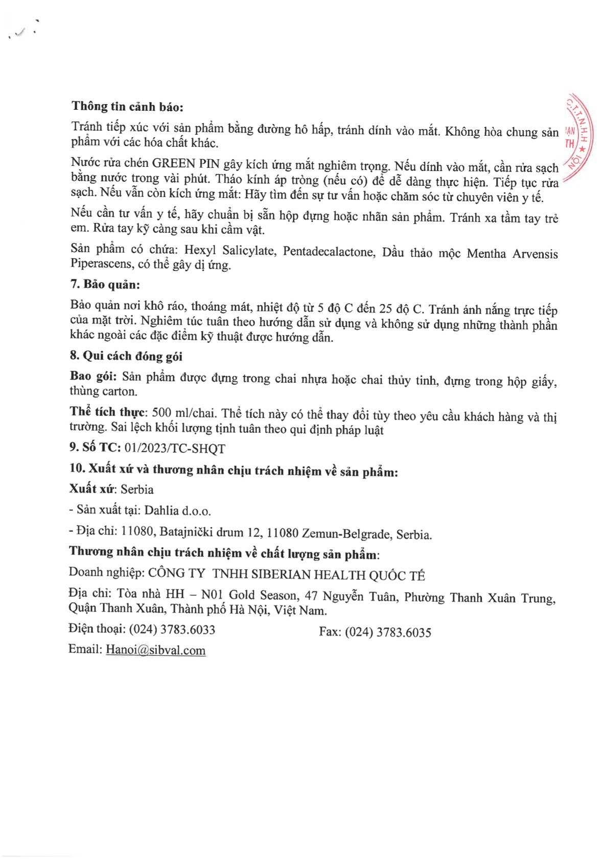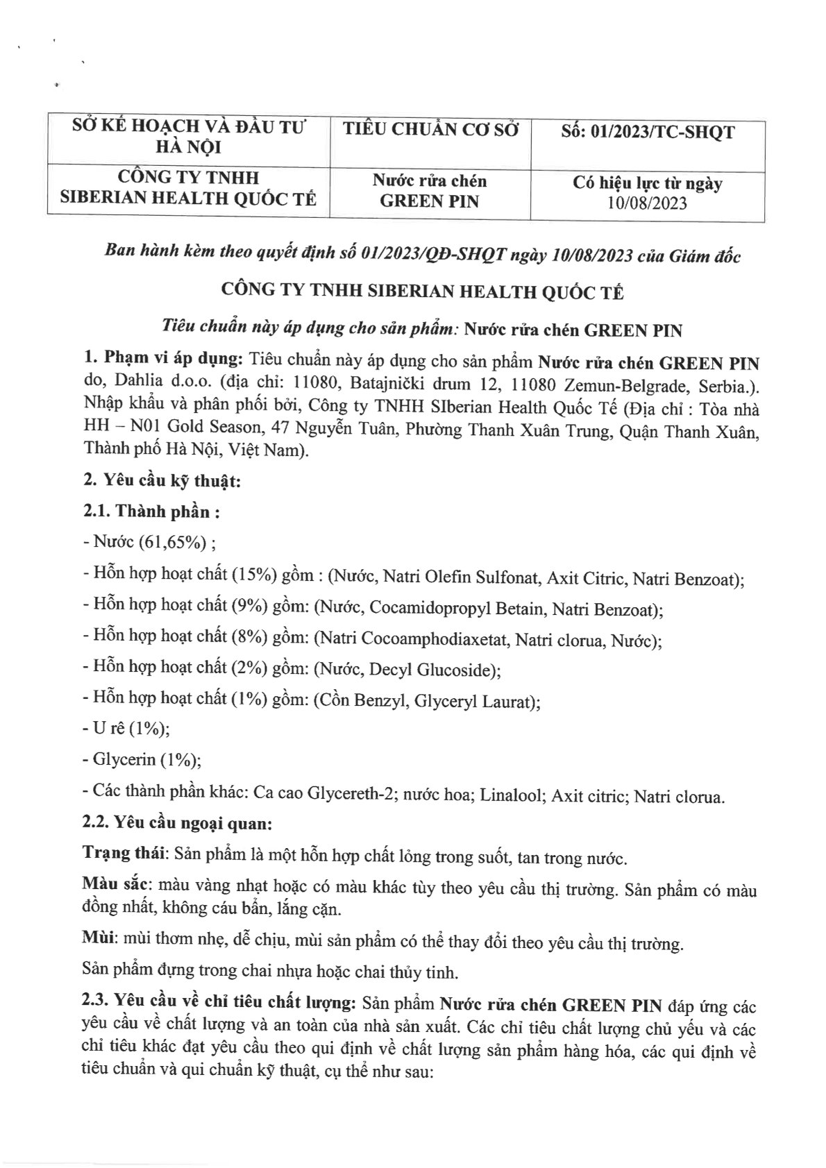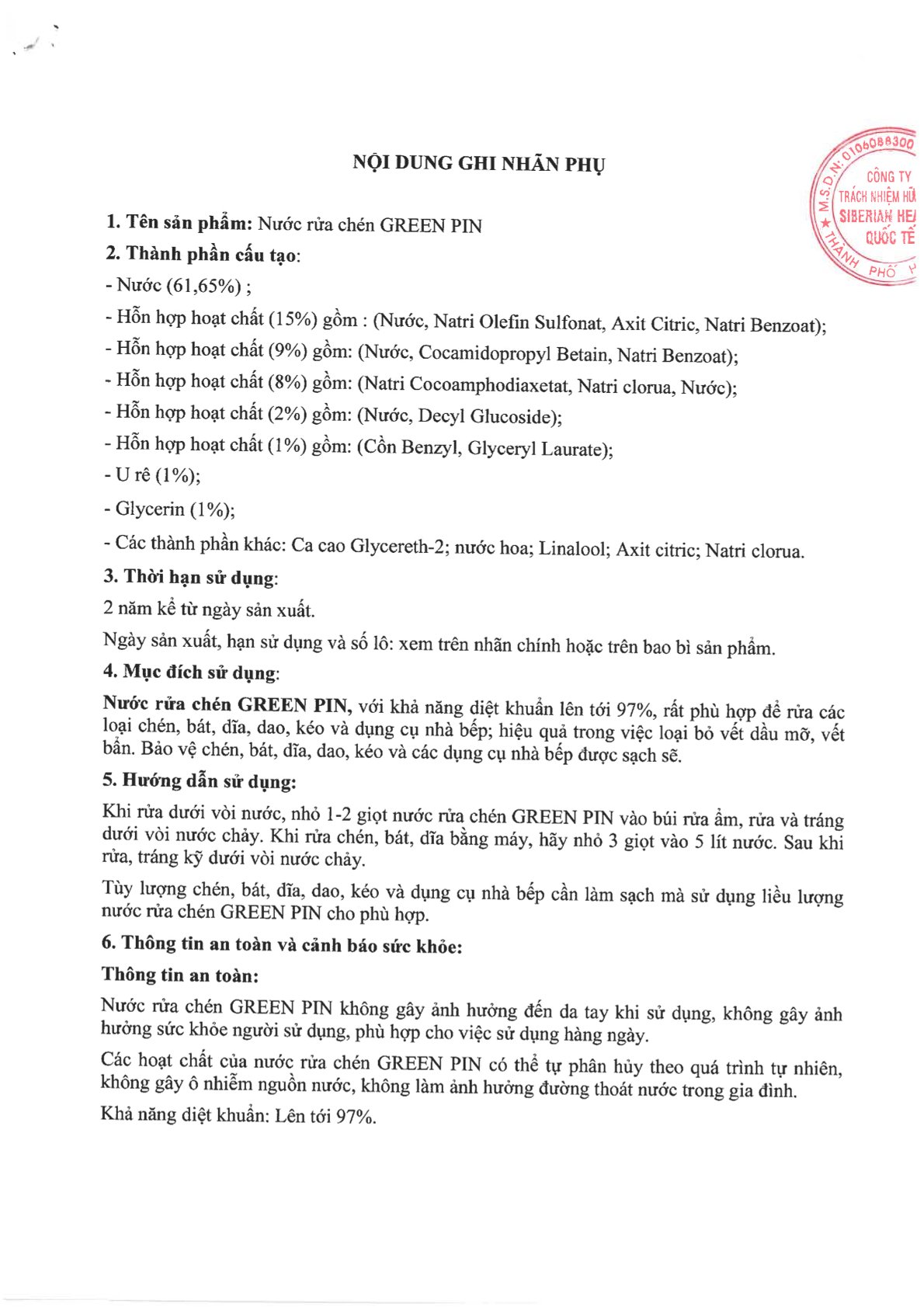 - Hỗn hợp hoạt chất (15%) gồm : (Nước, Natri Olefin Sulfonat, Axit Citric, Natri Benzoat);