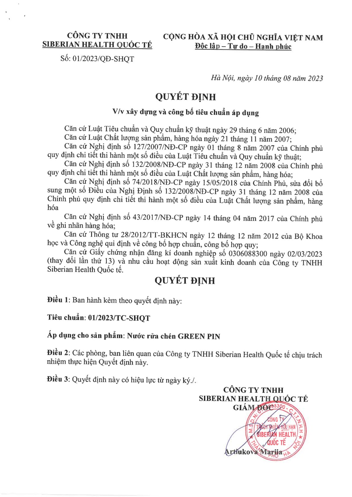 Nước rửa chén GREEN PIN