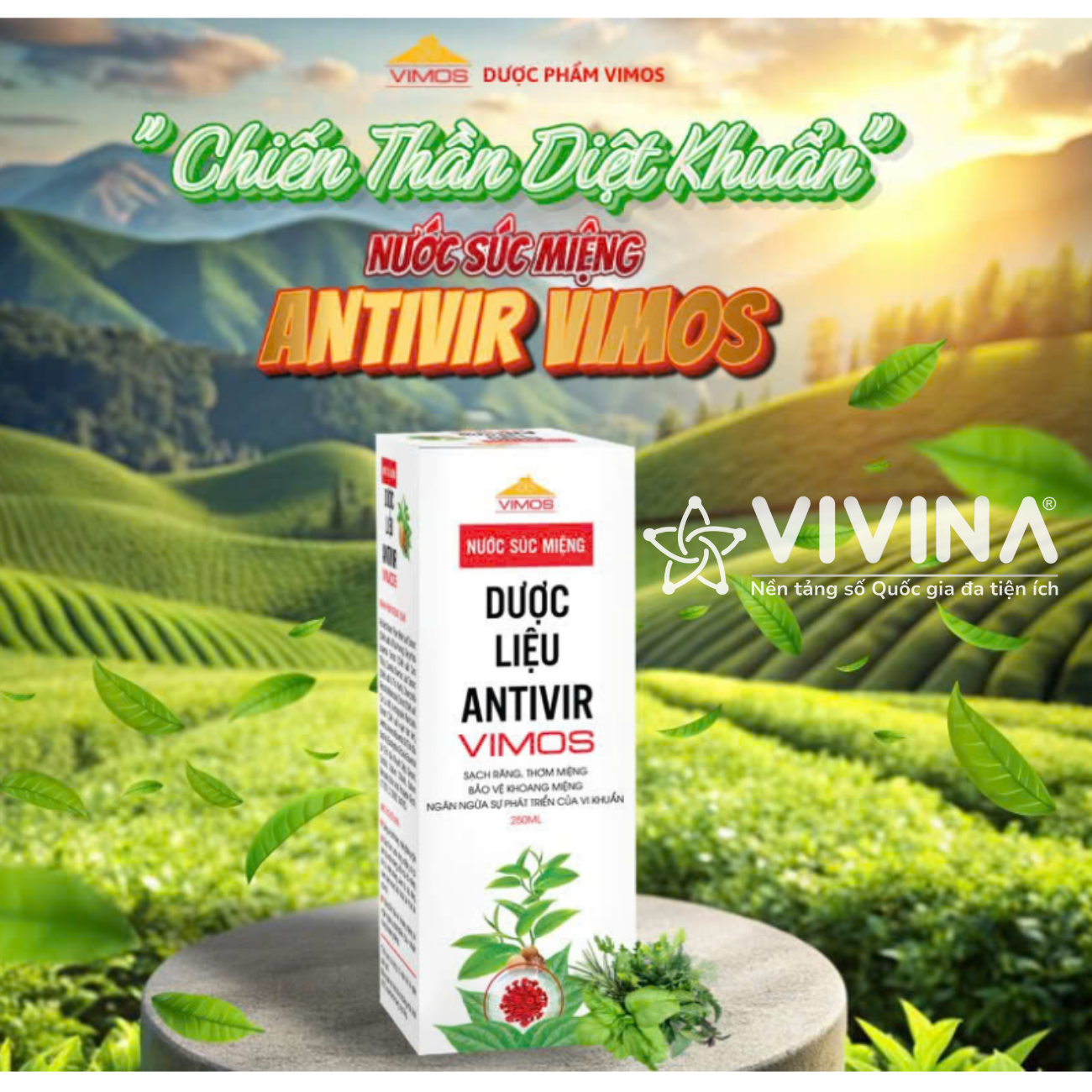 Nước Súc Miệng Dược Liệu Antivir Vimos 250ml Khử Mùi Hôi, Dịu Mát Khoang Miệng