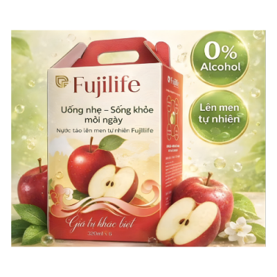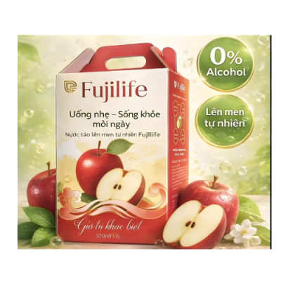 Nước táo lên men tự nhiên FUJILIFE là sản phẩm đồ uống dinh dưỡng được sản xuất từ cốt táo chất lượng cao, kết hợp công nghệ lên men tự nhiên hiện đại, mang đến hương vị thanh mát, dễ uống và nhiều lợi ích cho sức khỏe. Sản phẩm được nghiên cứu và sản xuất bởi FUJIWA Vietnam Nutrition – đơn vị đạt tiêu chuẩn ISO 22000:2018, đảm bảo an toàn và chất lượng.