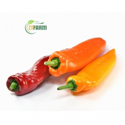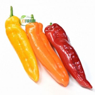 - Đặc điểm nổi bật: Ớt Sweet Palermo có hình dáng thon dài, nhọn ở đầu, với màu sắc phong phú như đỏ, vàng, cam. Thịt ớt dày, giòn, và đặc biệt có vị ngọt rất cao, không hề cay.
