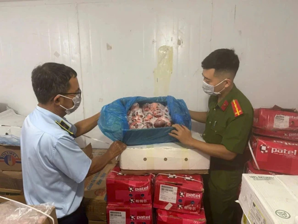 Lực lượng chức năng liên ngành đã kiểm tra đột xuất kho hàng đông lạnh của Công ty TNHH xuất nhập khẩu Thịnh Phát Food và phát hiện hơn 3,9 tấn thực phẩm đông lạnh nhập khẩu không rõ nguồn gốc.