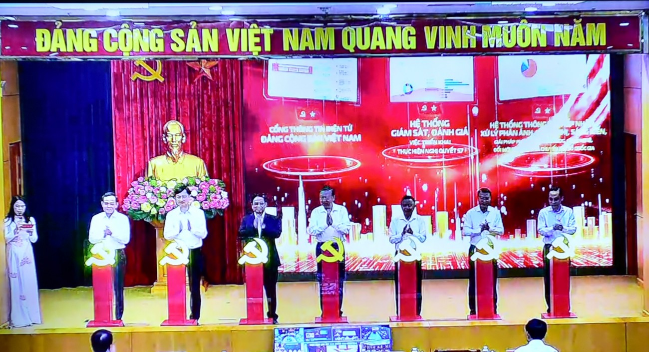 Mở đầu phiên họp, các đồng chí: Tổng Bí thư Tô Lâm - Trưởng Ban Chỉ đạo Trung ương về phát triển khoa học, công nghệ, đổi mới sáng tạo và chuyển đổi số; Phạm Minh Chính - Thủ tướng Chính phủ; Trần Cẩm Tú - Thường trực Ban Bí thư và các đồng chí trong Ban Chỉ đạo Trung ương thực hiện Nghị quyết số 57-NQ/TW của Bộ Chính trị đã nhấn nút ra mắt 3 nền tảng ứng dụng phục vụ thực hiện Nghị quyết số 57.