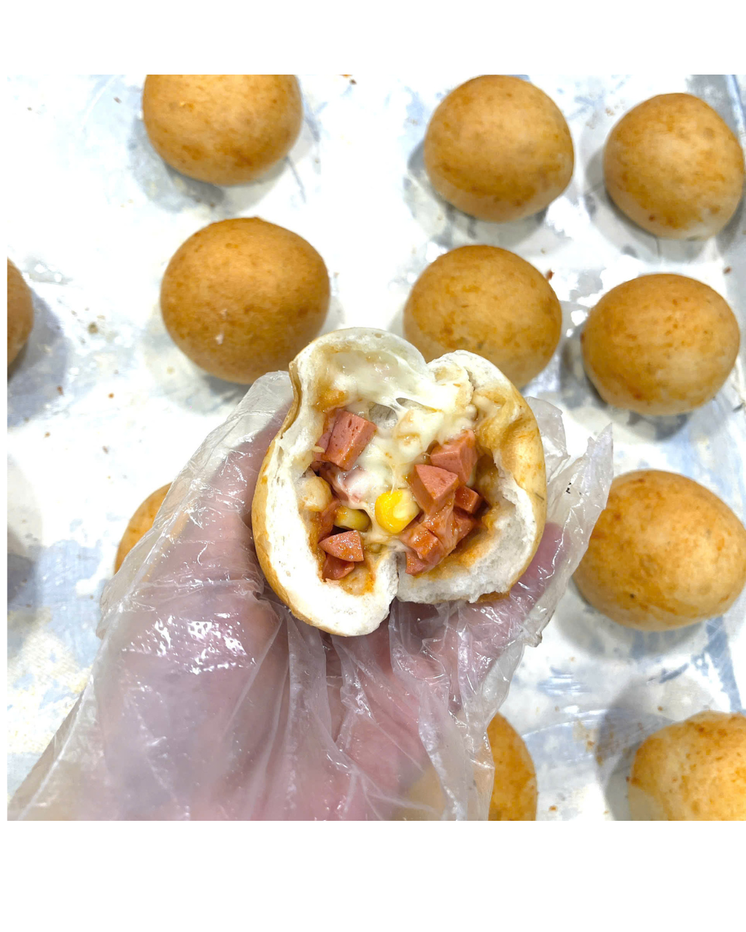 - Nhân xúc xích chiếm tỷ lệ cao, kết hợp phô mai béo thơm, vị mặn ngọt hài hòa, dễ ăn.