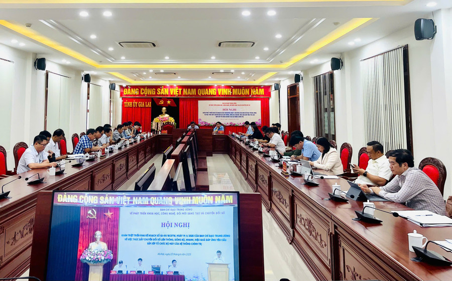 Tại Gia Lai, hội nghị kết nối đến điểm cầu cấp tỉnh, cấp huyện. Tham dự hội nghị tại điểm cầu Tỉnh ủy Gia Lai có các đồng chí: Hồ Văn Niên-Ủy viên Ban Chấp hành Trung ương Đảng, Bí thư Tỉnh ủy, Chủ tịch HĐND tỉnh, Trưởng ban Chỉ đạo tỉnh về phát triển KH, CN, ĐMST và CĐS; Nguyễn Ngọc Lương-Phó Bí thư Tỉnh ủy, Phó Trưởng Ban Chỉ đạo tỉnh về phát triển KH, CN, ĐMST và CĐS; thành viên BCĐ tỉnh về phát triển KH, CN, ĐMST và CĐS; Thường trực BCĐ của UBND tỉnh về phát triển KH, CN, ĐMST CĐS và Đề án 06 tỉnh; cùng đại diện lãnh đạo các sở, ban, ngành, tổ chức chính trị-xã hội, đơn vị viễn thông và cơ quan báo chí trên địa bàn tỉnh.