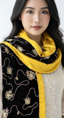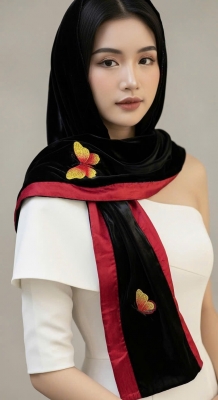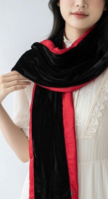 • Khăn nhung trơn - tối giản, tinh tế, dễ phối với mọi trang phục.