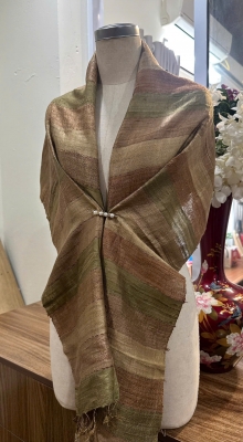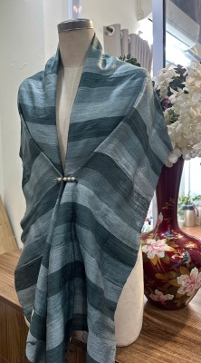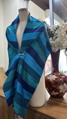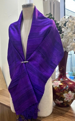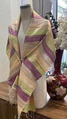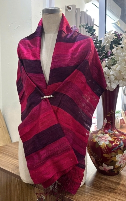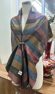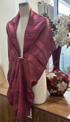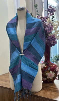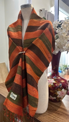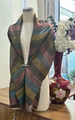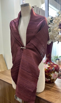 • Đặc điểm: Khăn có độ thô nhẹ, mộc mạc và tự nhiên, do được dệt bằng tay từ sợi tơ thật, không quá mềm mượt như lụa công nghiệp mà tạo nên vẻ đẹp chân thực, mang cảm giác ấm áp, gần gũi, có độ sần nhẹ đặc trưng của tơ tằm nguyên bản.