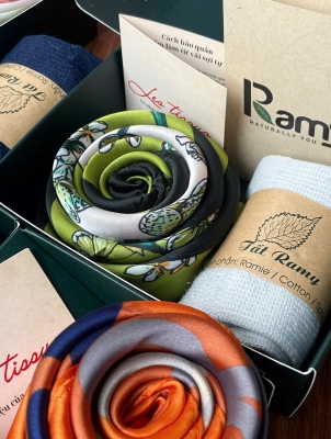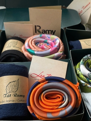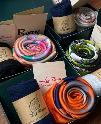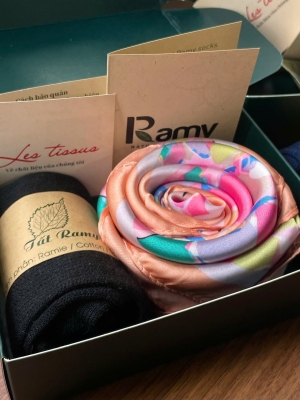 RAMY Set hộp quà tặng (1 khăn lụa vuông + 1 đôi tất)