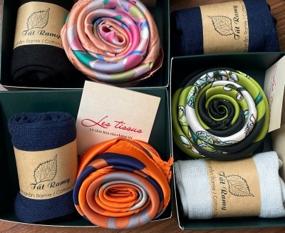 Set hộp quà tặng (1 khăn lụa vuông + 1 đôi tất)