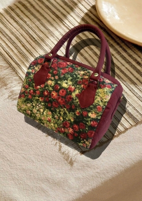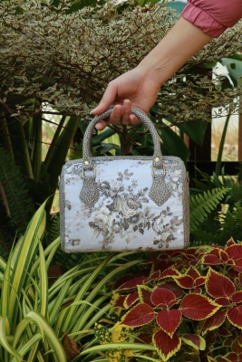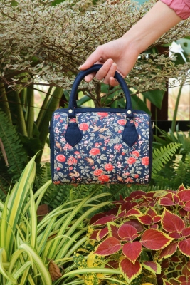 - Chất liệu vải cao cấp, in hoa nổi bật hoặc dệt họa tiết tinh xảo, đường may chắc chắn và tỉ mỉ trong từng chi tiết. Tay câm bọc vái êm, viền túi phối màu hài hòa, tạo cám giác ấm áp và thanh lịch.