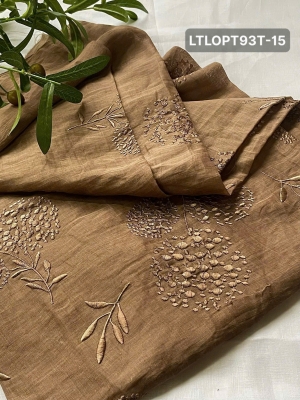 Vải linen tơ thêu bồ công anh màu nâu - LTLOPT93T