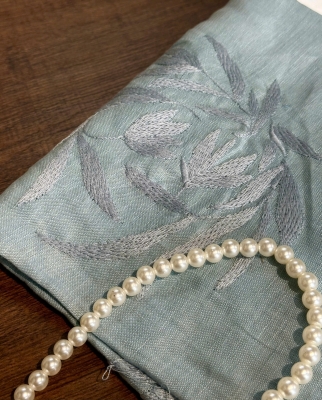 RAMY Vải linen tưng thêu lá màu xanh ngọc - LTLOP185T