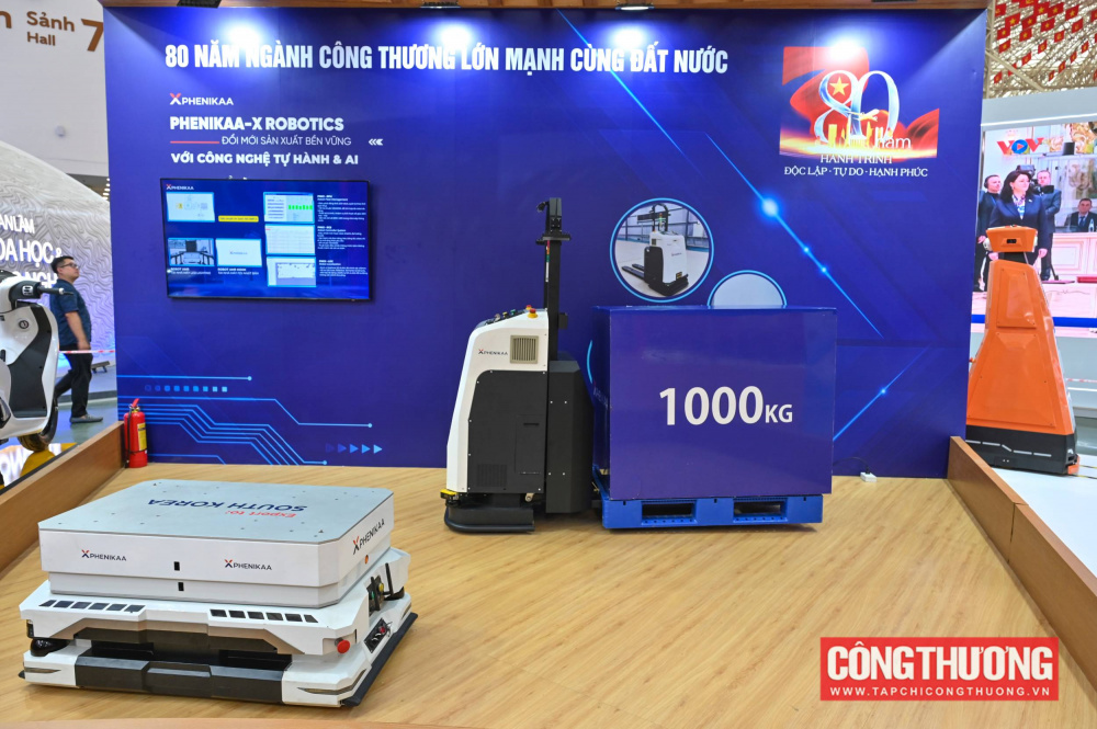 Tham gia triển lãm, Công ty Cổ phần Phenikaa-X (Tập đoàn Phenikaa) giới thiệu hai robot tự hành công nghiệp phục vụ vận chuyển do đội ngũ kỹ sư Phenikaa-X phát triển.
