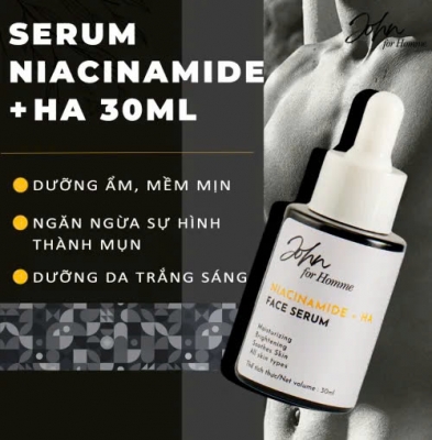 Tinh Chất Dưỡng Da John for Homme Niacinamide + HA 30ml – Dưỡng Ẩm, Sáng Da & Ngừa Mụn