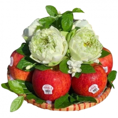 Set Trái Táo Mỹ Đỏ và Hoa Sen Trắng Xôi Đất Bắc – Trang Trí Mâm Cỗ – Sang Trọng, Ý Nghĩa