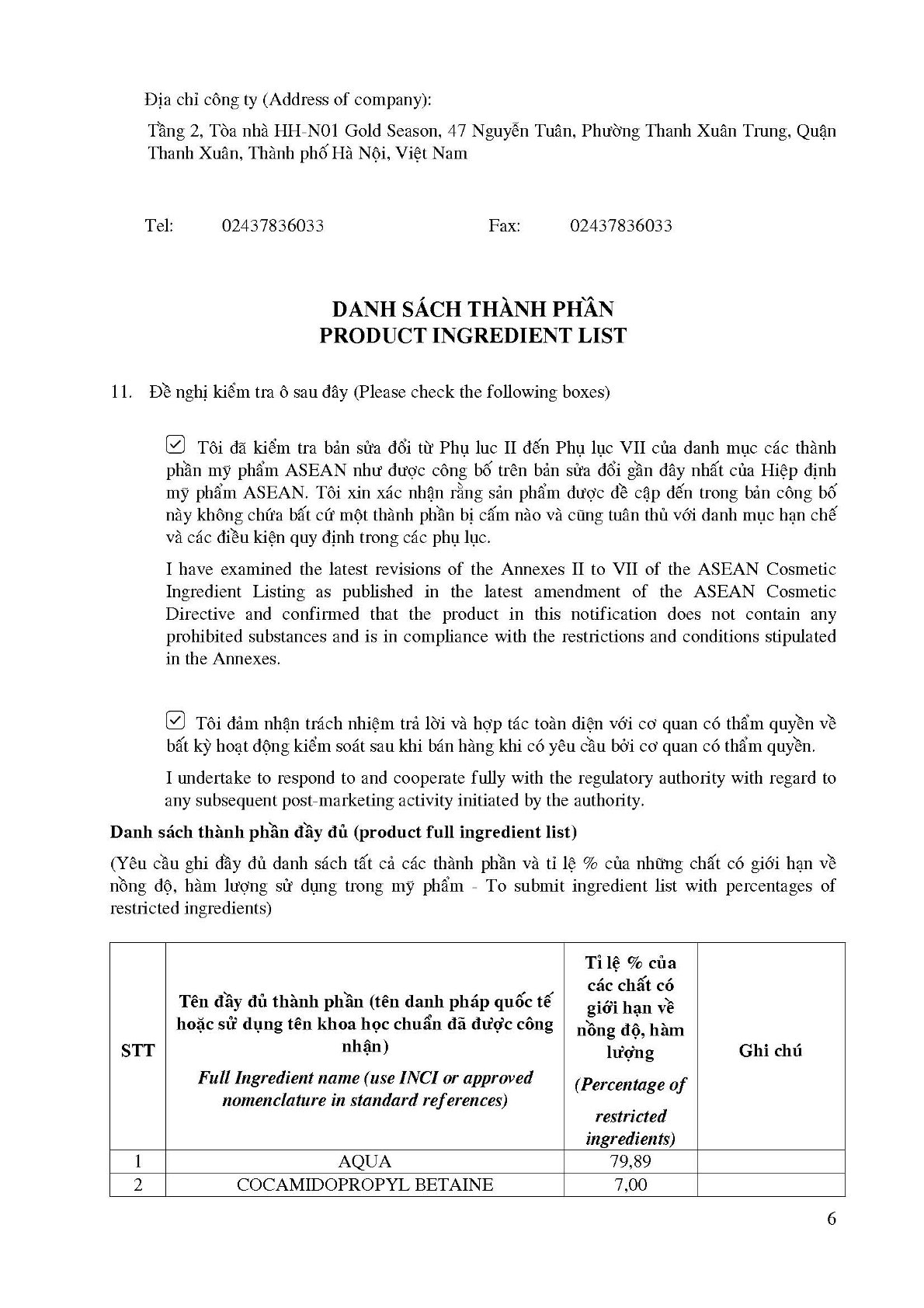 Thành phần: