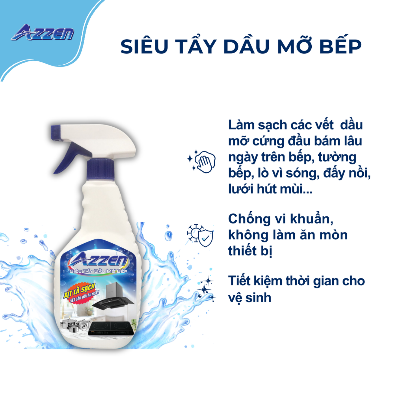 Siêu Tẩy Dầu Mỡ Bếp Azzen 500ml – Đánh Bay Dầu Mỡ Cứng Đầu