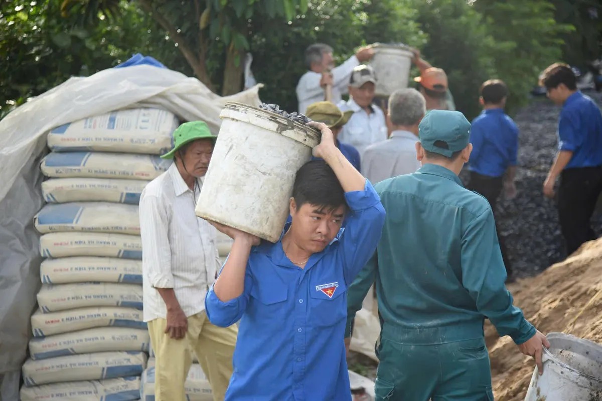 Cái nắng gay gắt gần trưa mùa hè không làm chùn những bước chân tình nguyện. Hầu như ai cũng mệt nhoài, mồ hôi nhễ nhại nhưng không khí nhộn nhịp. Các bạn sinh viên, dù không phải thợ chuyên nghiệp nhưng làm việc một cách bài bản. Họ chia thành từng nhóm theo nhiệm vụ riêng, như: Nhóm chuyển cát, đá, xi măng, nhóm hậu cần, người đứng cối trộn hồ, người cào hồ... Mọi hoạt động diễn ra nhịp nhàng, phối hợp ăn ý. Đặc biệt, ngay cả các bạn nữ, dù công việc khuân vác nặng nhọc, vẫn không hề ngần ngại, vẫn nhiệt tình hỗ trợ, cùng chung sức với các bạn nam.