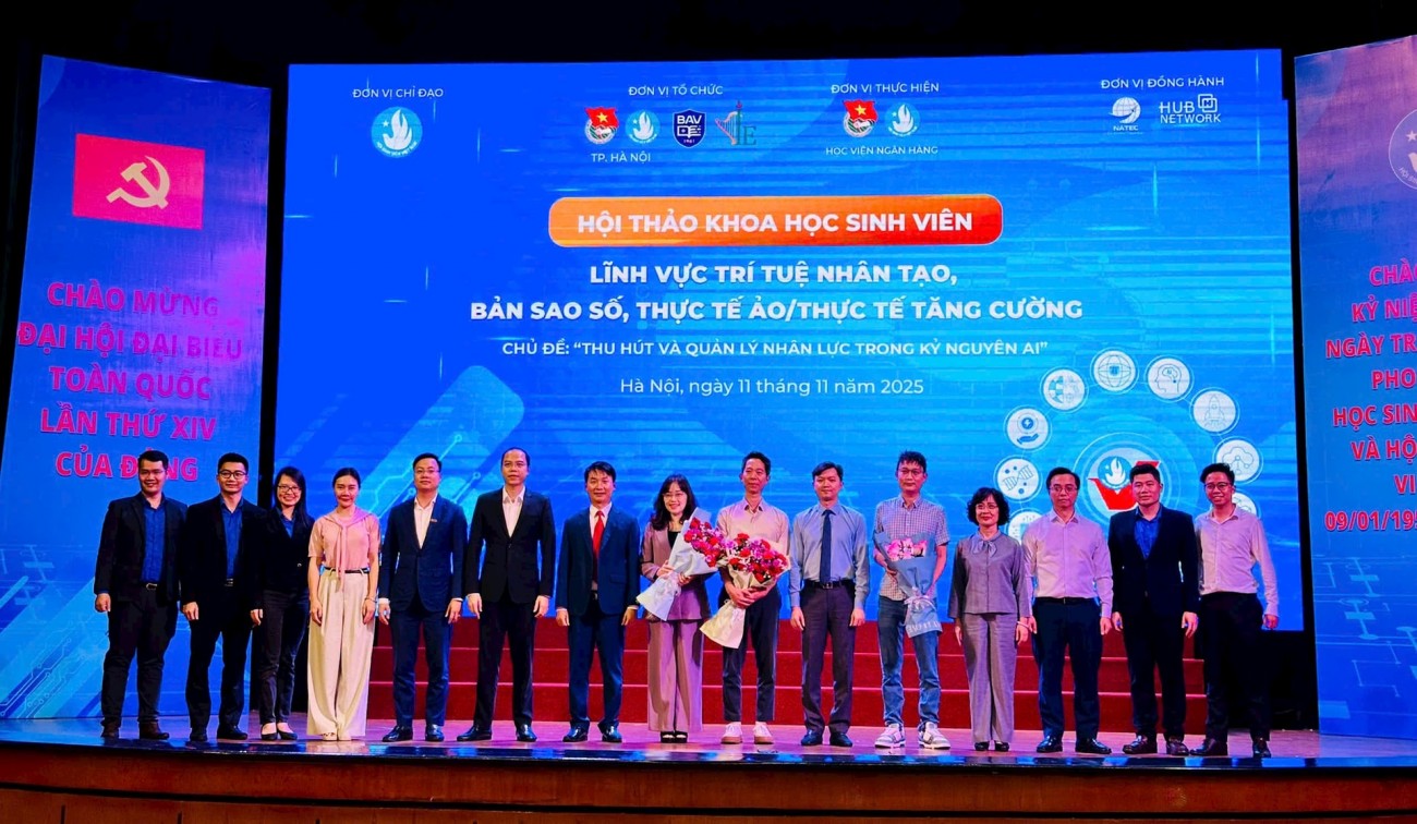 Chiều 11-11, tại Học viện Ngân hàng, Hội thảo khoa học sinh viên lĩnh vực Trí tuệ nhân tạo, bản sao số, thực tế ảo và thực tế tăng cường với chủ đề “Thu hút và quản lý nhân lực trong kỷ nguyên AI” đã diễn ra, thu hút sự tham dự của hàng trăm sinh viên, giảng viên, cùng các chuyên gia công nghệ hàng đầu trong và ngoài nước.