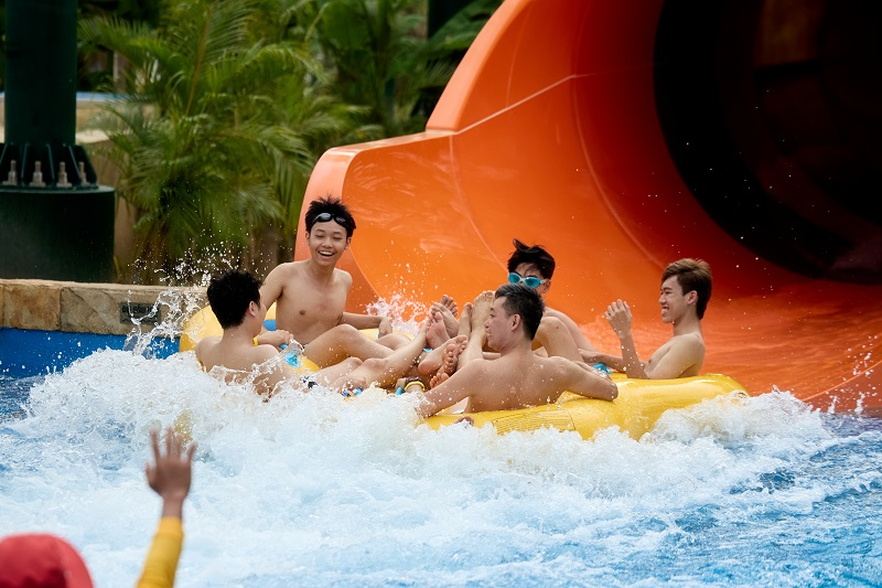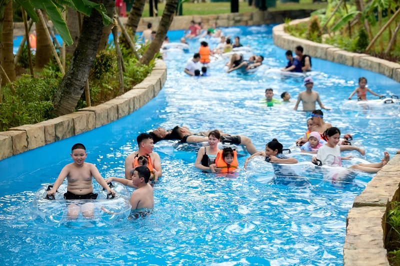 Nếu đi cùng trẻ nhỏ hoặc người lớn tuổi, các gia đình có thể lựa chọn khu lâu đài nước Chinh Phục Thủy Quái mở ra thế giới phiêu lưu đầy màu sắc để các bé có thể leo trèo, trượt nước và khám phá từng ngóc ngách mà không biết chán. Hoặc nằm “chill” cùng nhau trong làn nước mát của bể tạo sóng Vịnh Sóng Thần Trôi - nơi lý tưởng để ngụp lặn trong những con sóng nhân tạo, giữa không gian mô phỏng bờ biển dài đến 179m – rộng lớn và chân thực như một đại dương thu nhỏ. Ngay bên cạnh, Sông Đơ Huyền Thoại lững lờ uốn quanh công viên, đưa du khách vào hành trình thư giãn đúng nghĩa trên những chiếc phao đủ màu sắc.