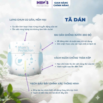 Tã Dán Cao Cấp Mom's Protection – Thấm Hút Nhanh, Không Thấm Ngược, Chống Tràn Hiệu Quả