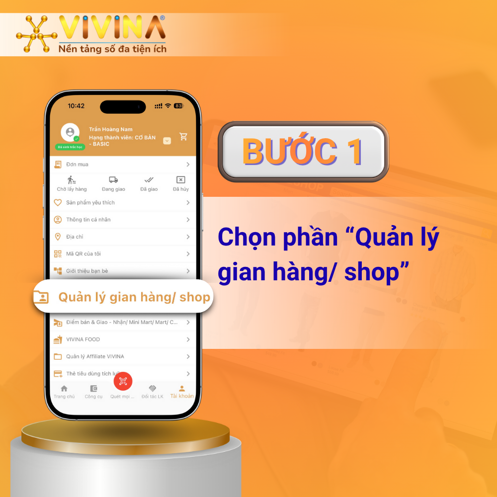 + Bước 1: Nhà bán hàng đăng nhập vào tài khoản trên VIVINA