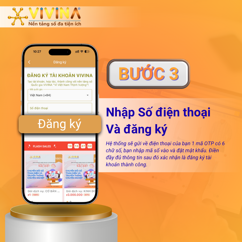 Trên VIVINA bạn có thể đăng ký trên website hoặc đăng ký trên Ứng dụng VIVINA
