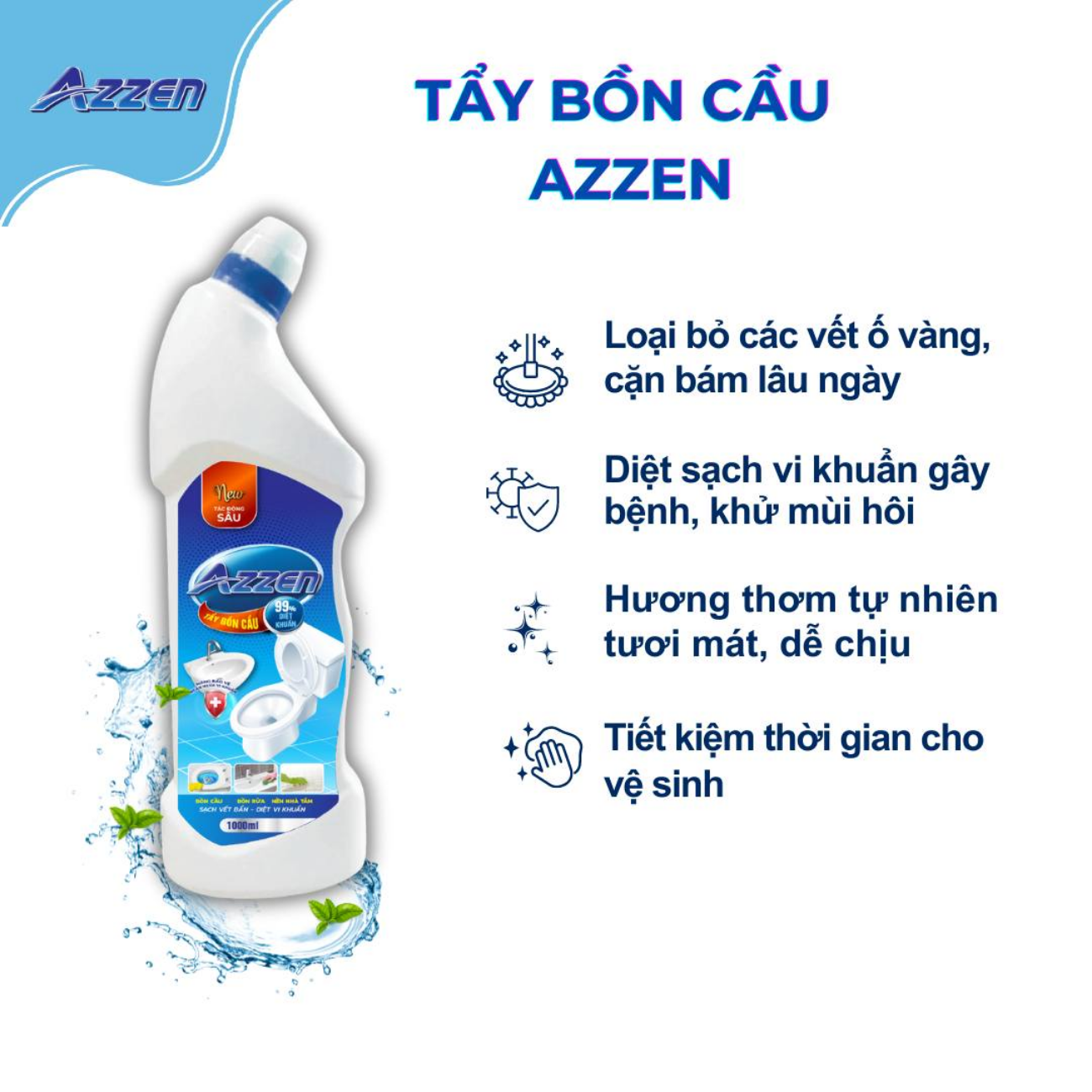 Tẩy Bồn Cầu Azzen 1L – Diệt Khuẩn, Khử Mùi, Đánh Bay Vết Bẩn Cứng Đầu