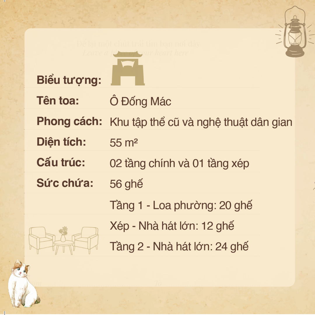 Ô Đống M á c là một không gian độc đáo, tái hiện không khí của những khu tập thể cũ tại Hà Nội – một lớp ký ức quen thuộc, giản dị nhưng đầy chất thơ.
