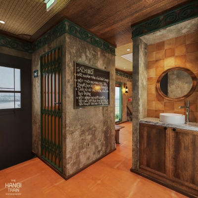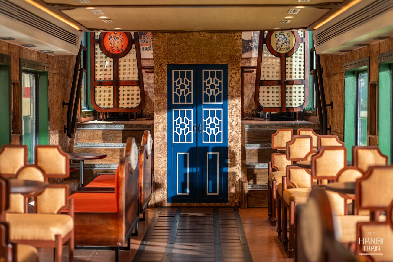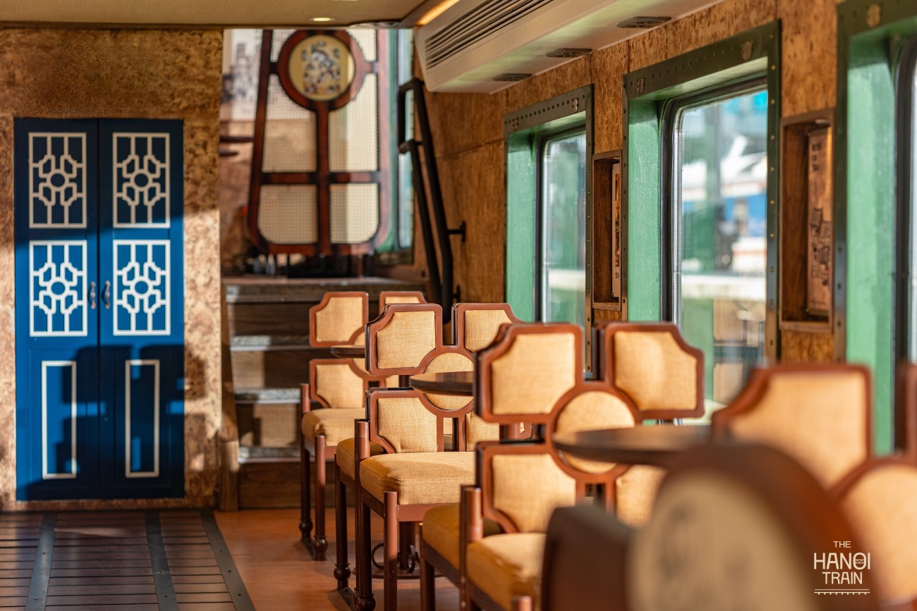 Nếu mỗi toa xe như một cánh cửa thời gian mời gọi bạn bước vào cuộc du ngoạn với từng lớp ký ức của Hà Nội, thì ở toa xe này, bạn sẽ thực sự bước qua nhiều cánh cửa. Khi là cánh cửa sắt uốn màu lá cây sẫm cạnh tấm bảng thông báo màu đen của khu tập thể; khi là cánh cửa màu thiên thanh mà bao thế hệ đã mở ra để mộng mơ.