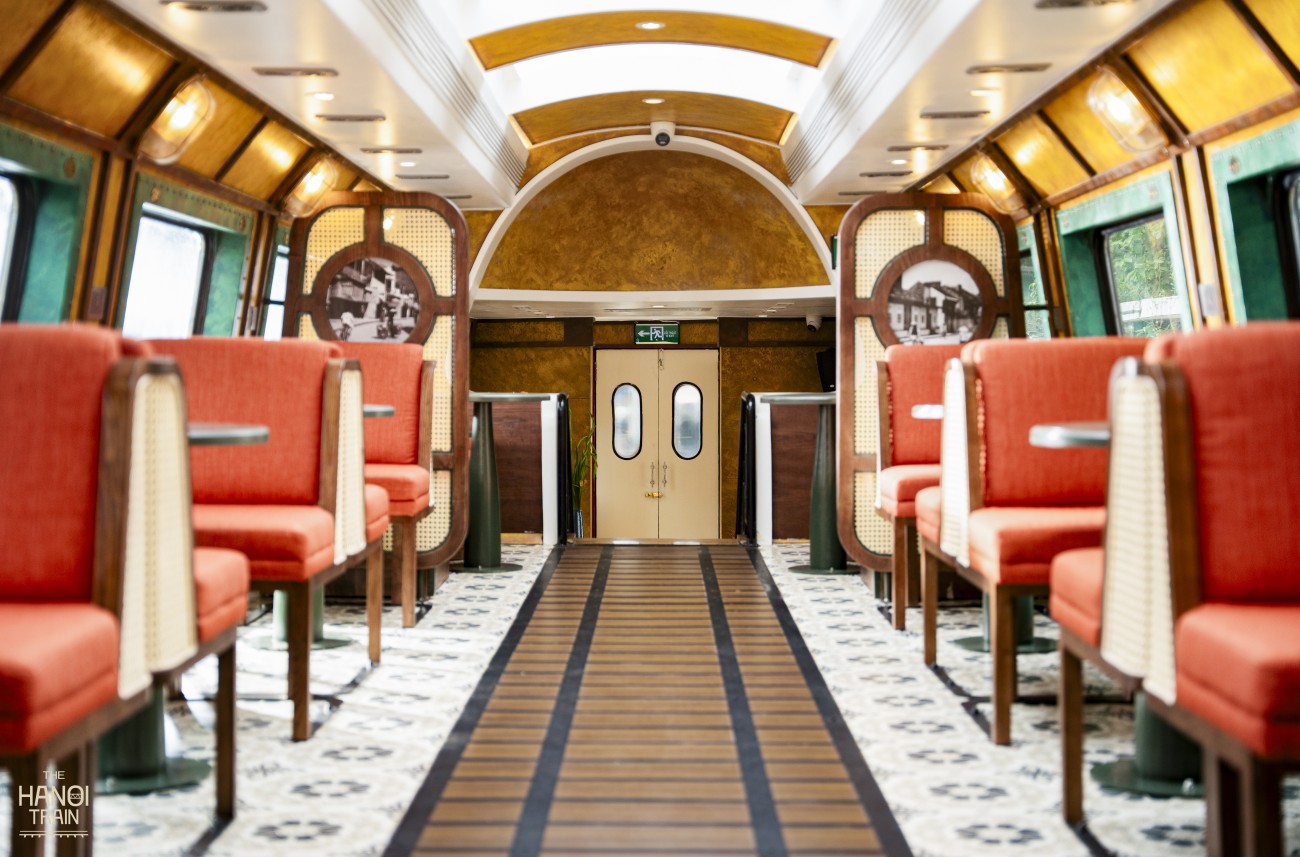 Đây là toa tàu của những biểu tượng vượt thời gian: Du khách sẽ tìm thấy vòm ga Hà Nội xưa và hình ảnh Cầu Long Biên được biểu đạt trong các chi tiết kiến trúc hay nội thất . Đặc biệt, những gợn sóng nhẹ nhàng của sông Hồng được lồng ghép tinh tế, tượng trưng cho mạch nguồn di sản đang chảy mãi.
