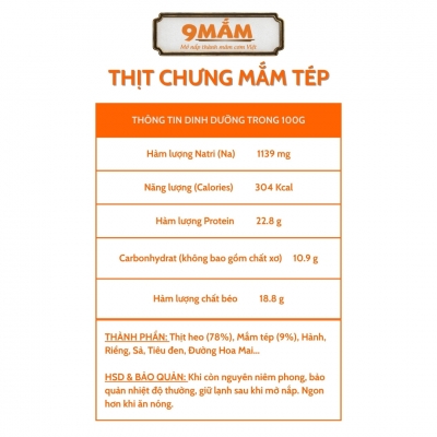 Công thức gia truyền độc đáo: Thịt chưng mắm tép 9MẮM vừa mềm, dẻo, đỏ au, thơm lừng, dậy mùi mắm tép truyền thống tăng độ bám dính và hòa quện với các thực phẩm ăn kèm. Thậm chí bạn có thể chấm xôi, quệt với bánh mỳ… Nó khác biệt hoàn toàn với các loại thịt chưng mắm tép săn, tơi, rời rạc.