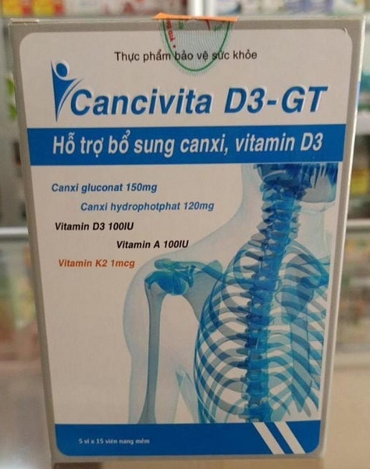 Thông tin sản phẩm: Giấy tiếp nhận công bố sản phẩm số 2375/2019/ĐKSP ngày 12/3/2019 cho sản phẩm thực phẩm bảo vệ sức khỏe CANCIVITA D3-GT số lô LSX: 01.02.25. NSX:12.02.25; HSD: 11.02.28 và số lô 01.06.23 NSX02.06.23 HSD 01.06.26 do Công ty CP Dược phẩm Gia Thuận, địa chỉ: phố Hồ (lô 1-2, NR Nguyễn Thị Doan), phường Hồ, thị Xã Thuận Thành, tỉnh Bắc Ninh (nay là phố Hồ, lô 1-2, NR Nguyễn Thị Doan, phường Thuận Thành, tỉnh Bắc Ninh) công bố thông tin.