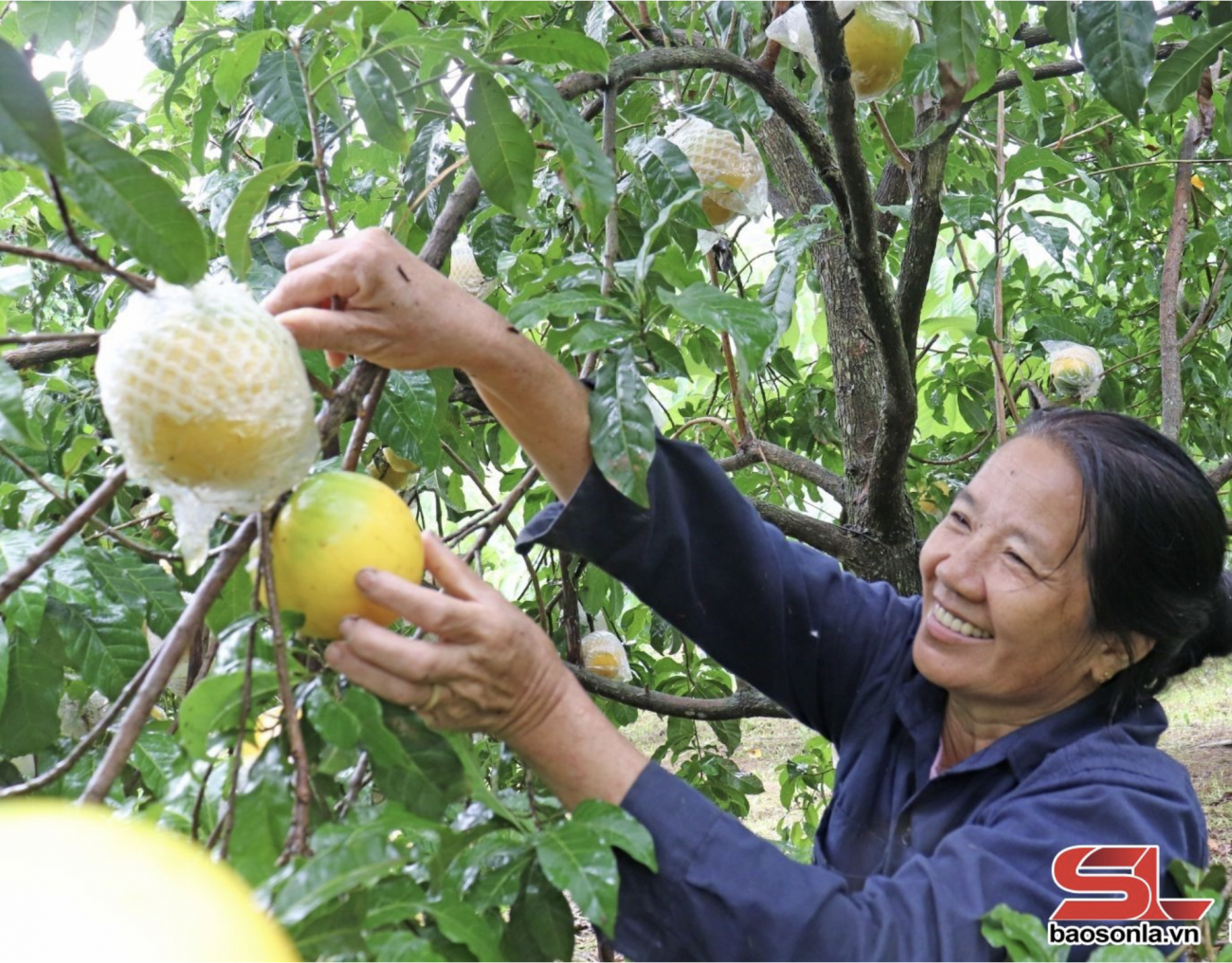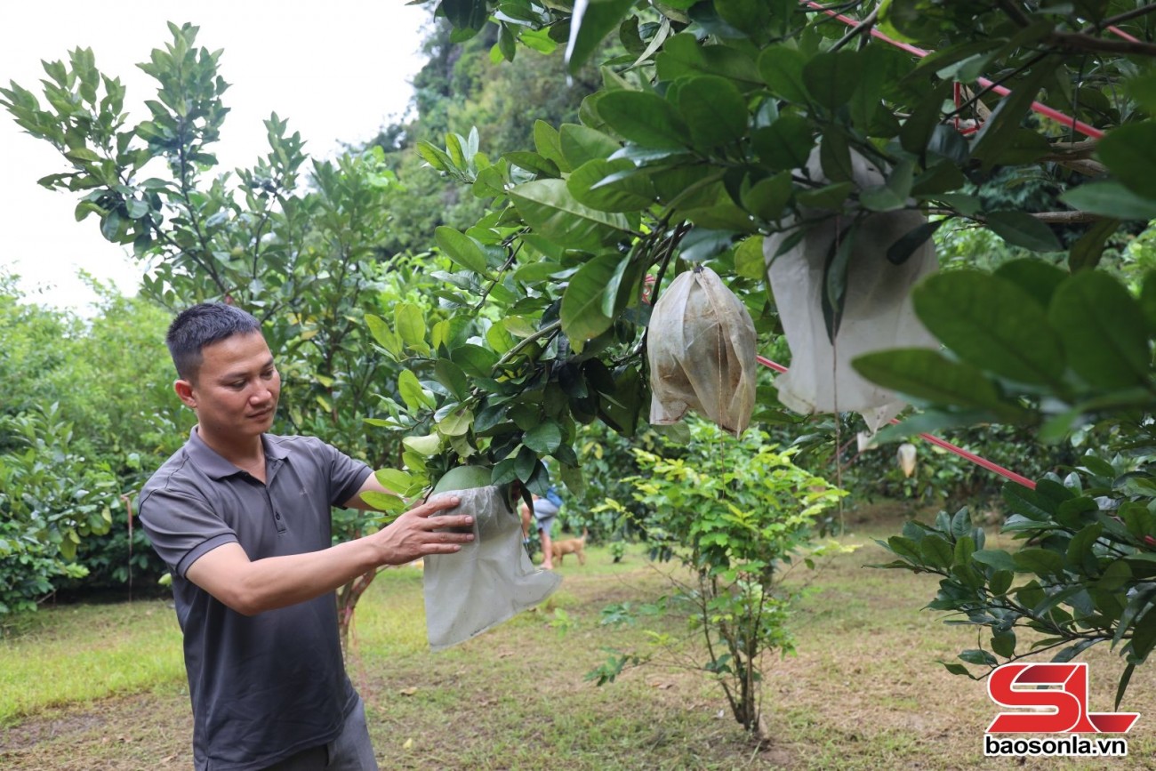 Hộ ông Nguyễn Bá Vụ (bản Đông Quan): Thu trên 200 triệu đồng/năm từ mận hậu và bưởi.