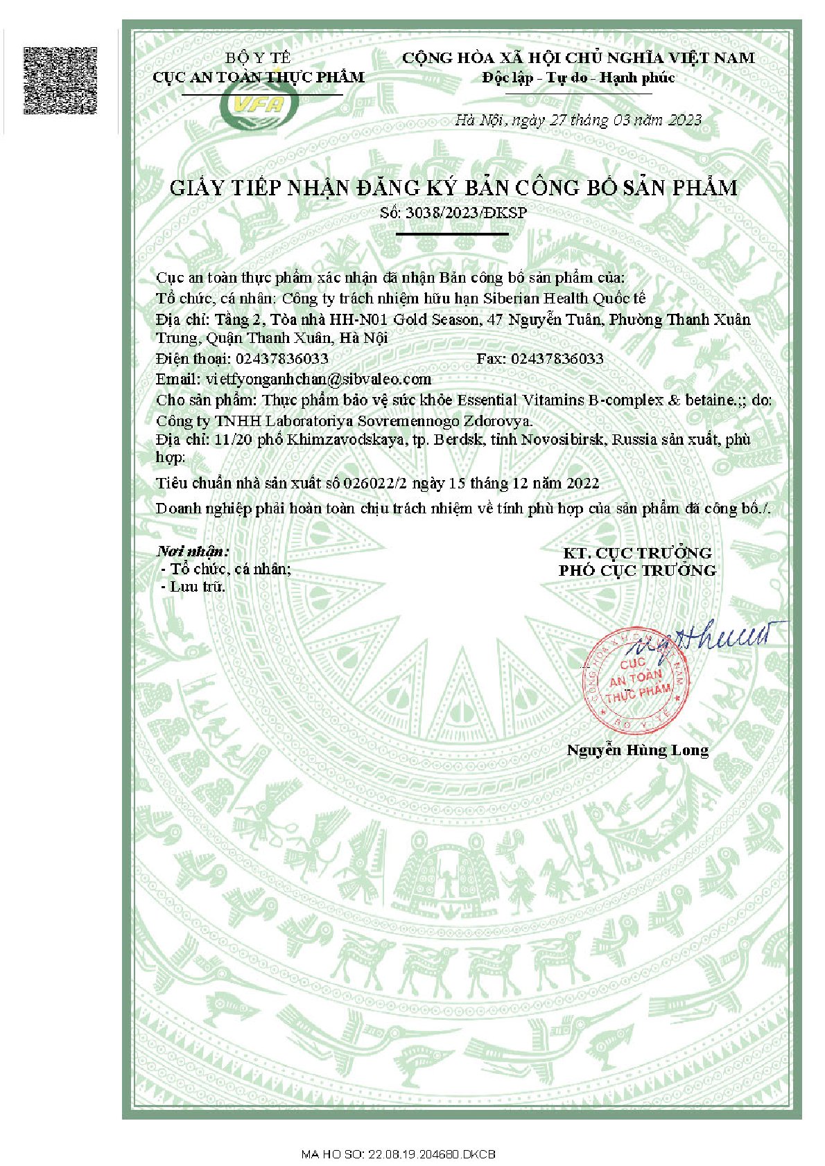 Thực phẩm bảo vệ sức khỏe Essential Vitamins B-complex & Betaine